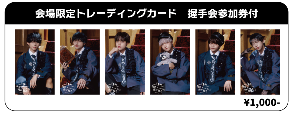 特典会の参加には、物販にて販売されるトレーディングカード(握手会参加券付き)1,000円(税込)に付随する握手券が必要となります。